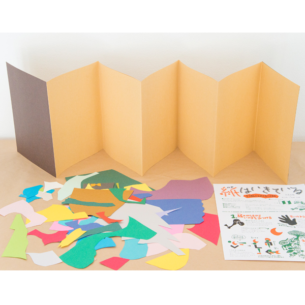 色紙の切れはしを組み合わせて、じゃばら絵本がつくれます。